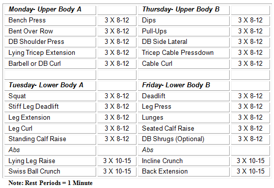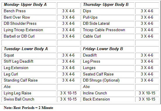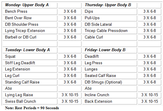 If you miss a workout, simply work your schedule so you get back on track. Do not skip a workout! You have three off days per week. If you miss Tuesday’s workout then try to do it on Wednesday and then get back on your normal schedule.